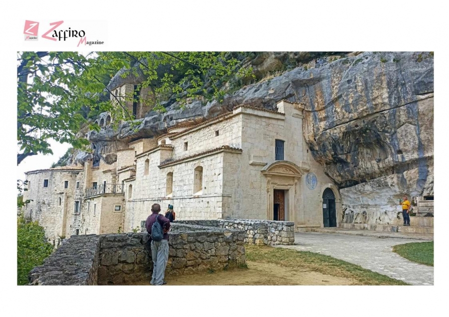 L’escursione non termina qui perché bisogna fare visita all’eremo di SANTO SPIRITO A MAIELLA. Questo eremo, anche se l’ho esplorato tante volte, mi procura gioia, amore, emozione, raccoglimento. Si trova sulla Maiella, nel comune di Roccamorice PE a (1132 m). Per tanti minuti resto incantato, con gli occhi fissi, nel vedere questa enorme opera architettonica, costruita nella roccia. Con cognizione di causa, è un monumento nazionale italiano. È stato un monastero della Congregazione dei Celestini, fondata da Pietro del Morrone, nato nel Molise nel 1209 e morto a Fiumone FR, il 19 maggio 1296 a 87 anni, luogo di prigionia per papa Celestino V dopo la sua rinuncia al pontificato. Come poteva un eremita, che ha trascorso la sua vita nelle grotte, nutrendosi di quello che la natura offriva, accettare la pomposità della vita papale? La storia dell’eremo, è legata a questo eremita, dove vi arrivò nel 1246 a 37 anni e lo ristrutturò, costruendo a poco a poco altri locali destinati agli eremiti, che si aggiungevano alla comunità. Ora, risultano conservati la chiesa, la sagrestia, i resti del monastero distribuiti su due piani, con la foresteria e le celle.